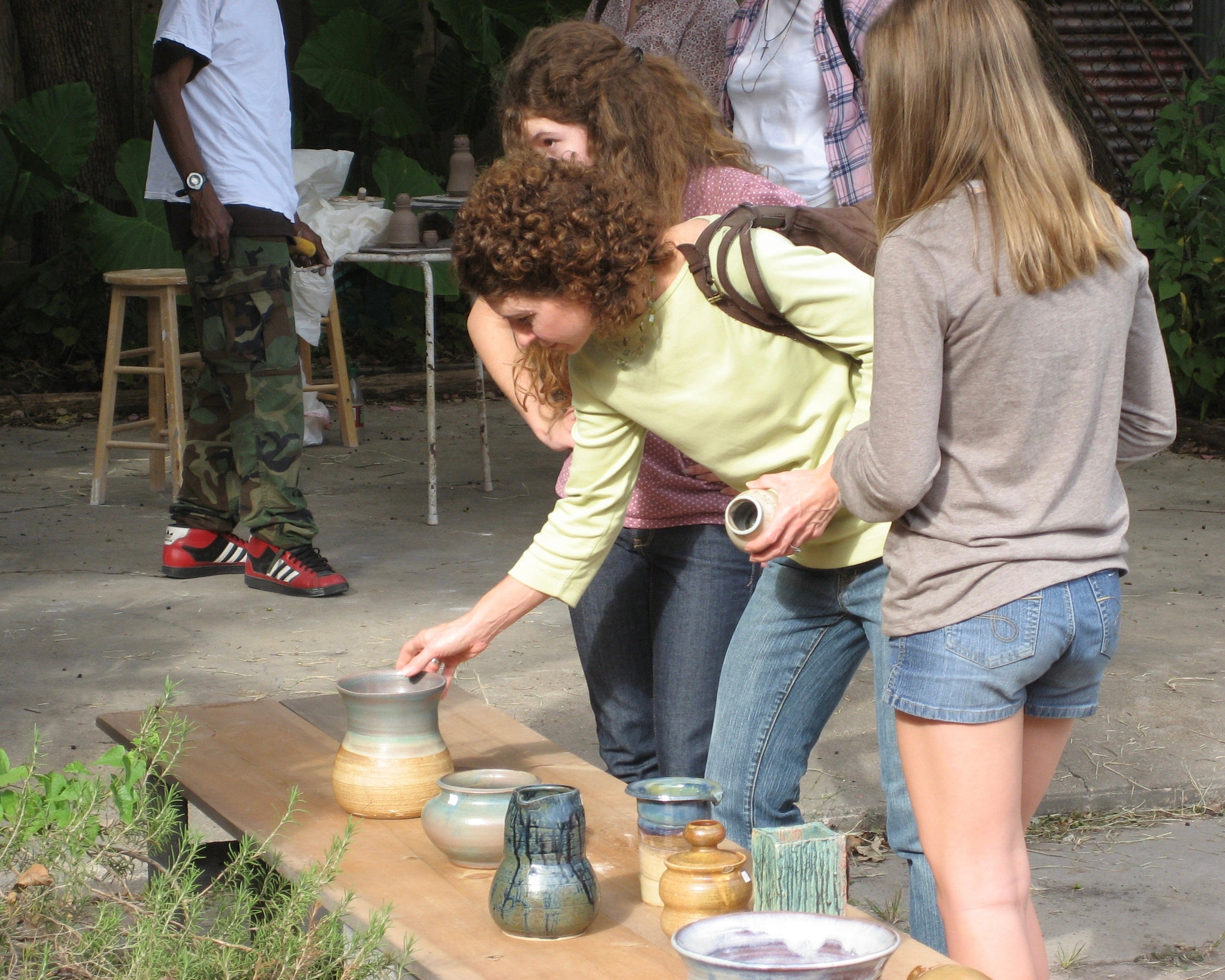 Shoppers at past sales enjoying the selection and our backyard.