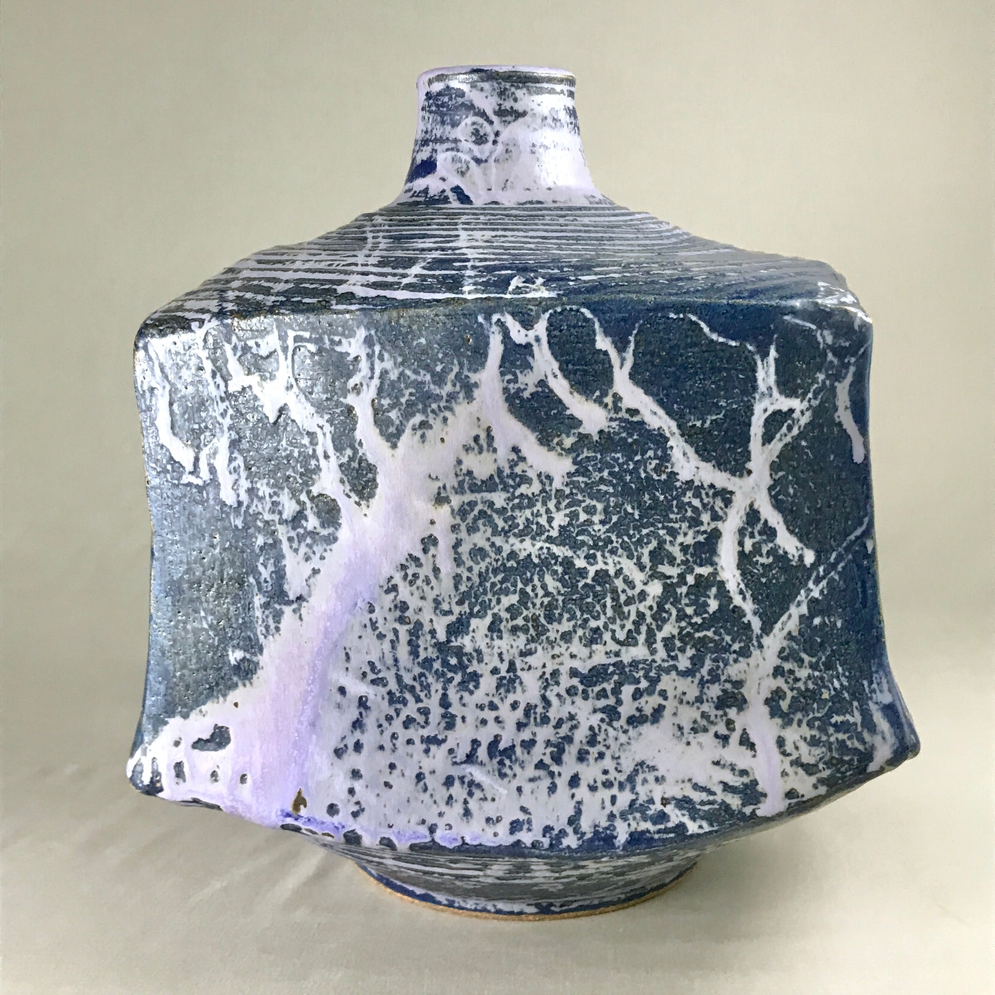 Big. Bold. Beautiful. Love the exciting surface patterns created by our unique lavender/indigo glaze. Partially wheel-thrown, partially slab-built. Constructed with care using a sturdy stoneware clay body. Created by John Foelber.